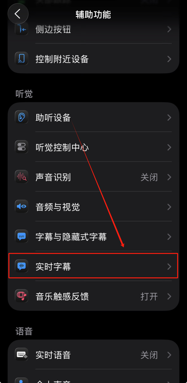 点击“实时字幕”选项。