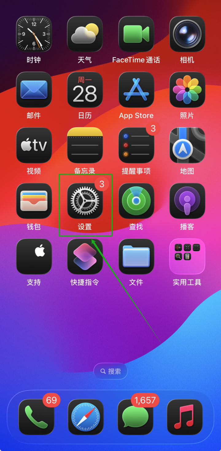 实时字幕类似于语音转文字功能,使用场景比如我们开会的时候往往需要进行记录,此时可以开启此功能,它可以将语音准确的转换为文字,并且在屏幕上显示。扩展语言支持,包括英语(澳大利亚)、英语(英国)、英语(印度)、英语(新加坡)、德语(德国)、西班牙语(西班牙)、西班牙语(墨西哥)、西班牙语(美国)、法语(加拿大)、法语(法国)、日语(日本)、韩语(韩国)、粤语(中国)、中文(中国)、中文(香港)等。语音转换成的文本信息之后,我们可以对其进行拷贝、粘贴或者清楚听写文本。并且,切换“保存通话字幕”以允许对通话字幕进行拷贝和截屏。如何开启此功能呢?打开苹果手机主界面,点击“设置”选项。