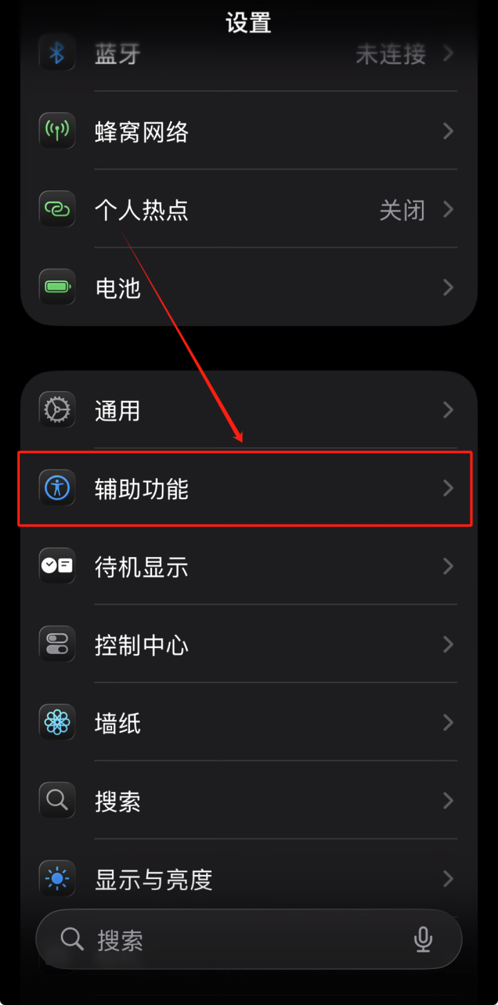 点击“辅助功能”选项。